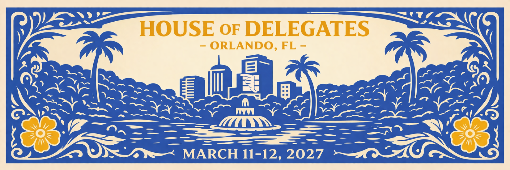 The House of Delegates is the association's legislative body, responsible for electing officers and determining policies, initiatives and directives.